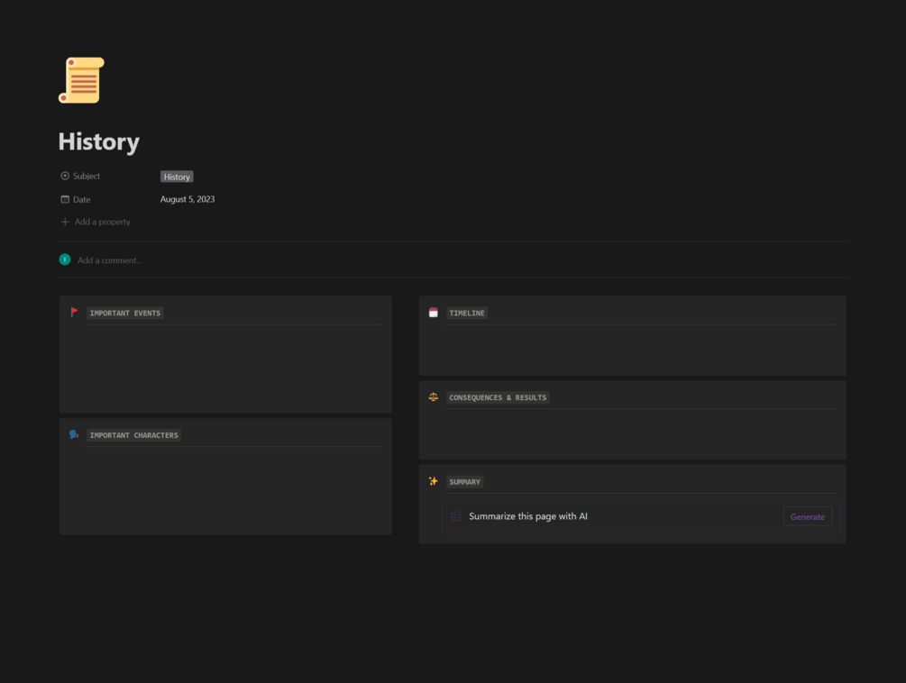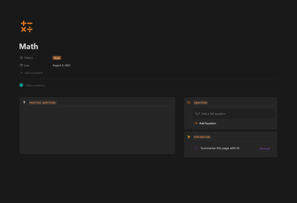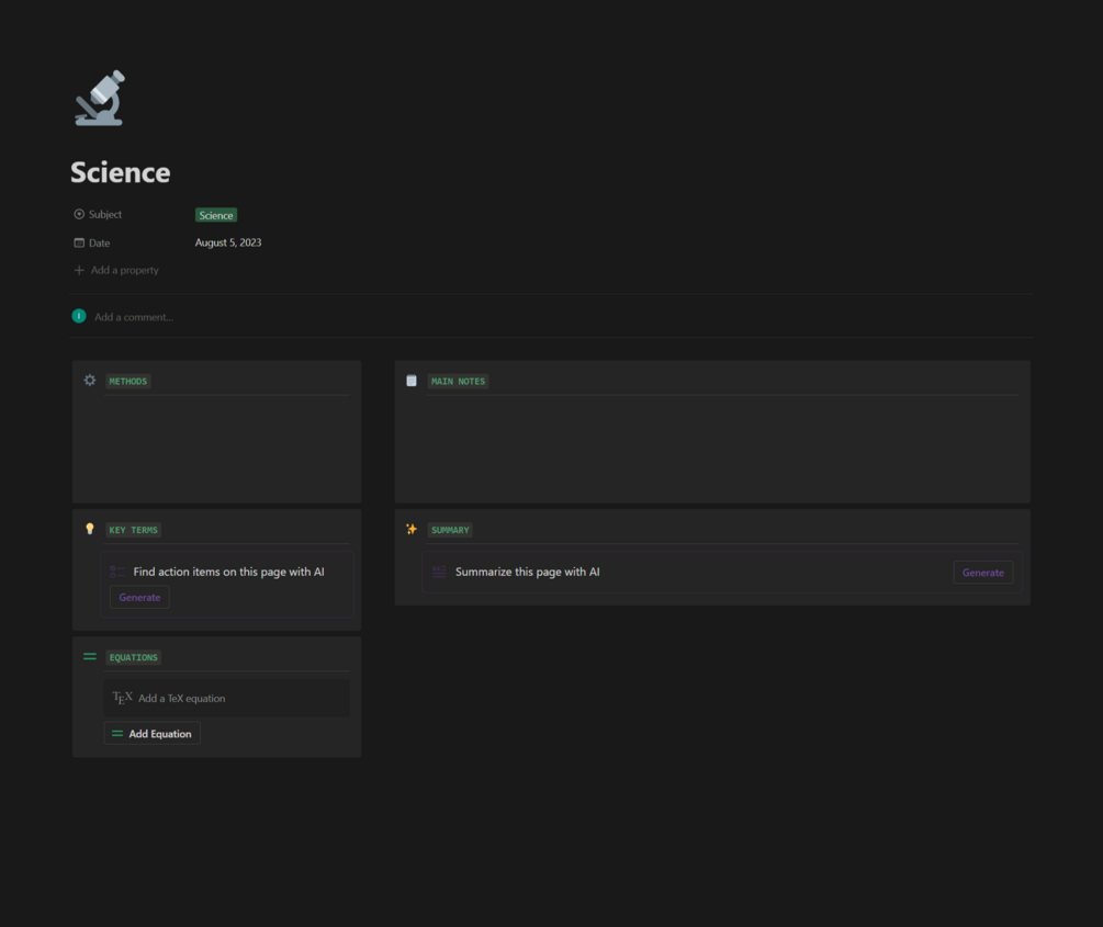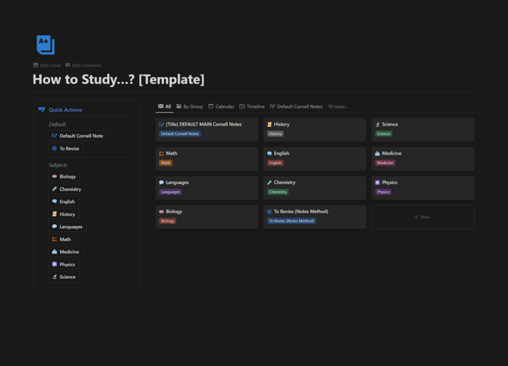 This template provides a comprehensive "How to Study…? (W/Notion AI) (w/Notion Automations)" guide with diverse Cornell Note-taking and To Revise templates for areas like Biology, Chemistry, Engineering, English, History, Languages, Math, Medicine, Physics, Science, Social Studies, and Tech. and more, all powered by Notion AI. It empowers individuals, teams, and companies to enhance their study techniques, streamline information organization, and optimize learning processes. The customizable nature of the templates allows users to tailor their study materials to specific topics, fostering effective comprehension, retention, and long-term knowledge acquisition. Whether for academic purposes or professional development, this template brings significant benefits to users by promoting efficient and successful study habits. Helping your notes with Notion-AI.